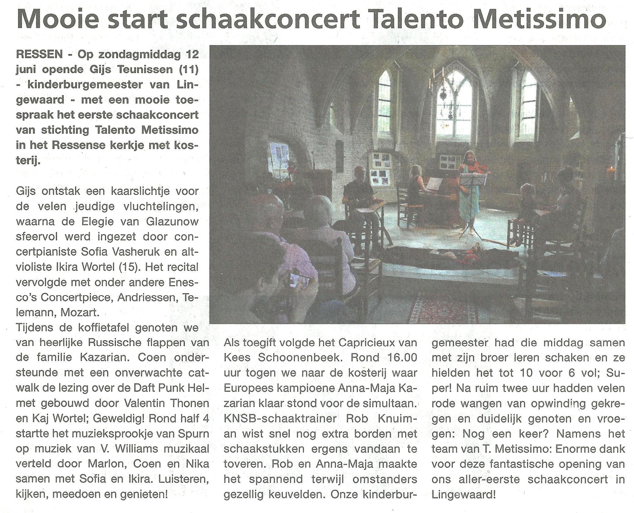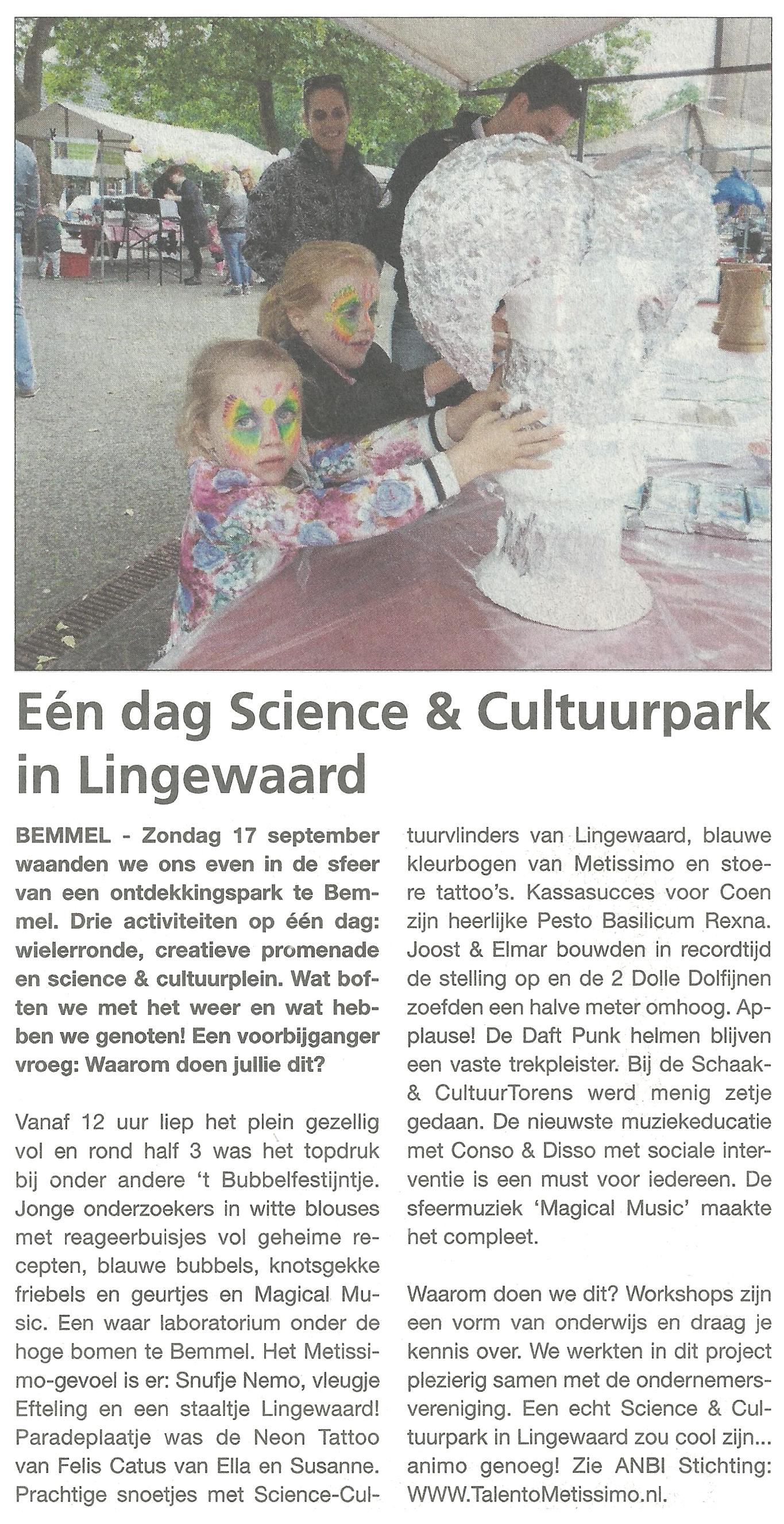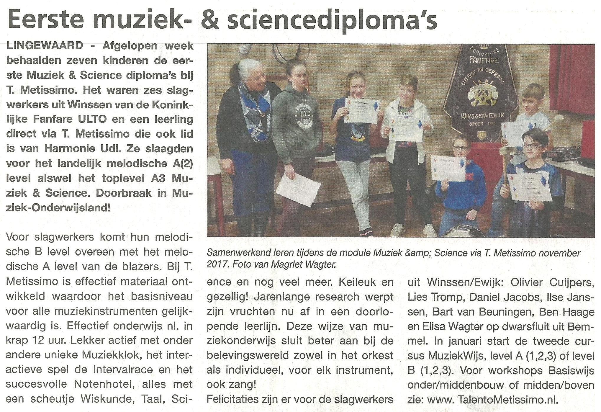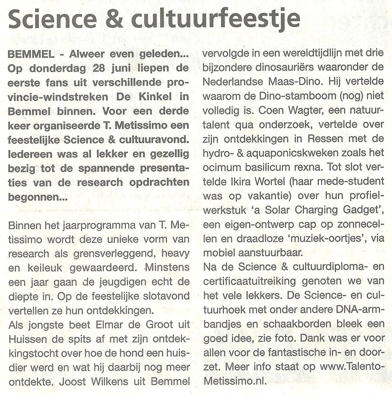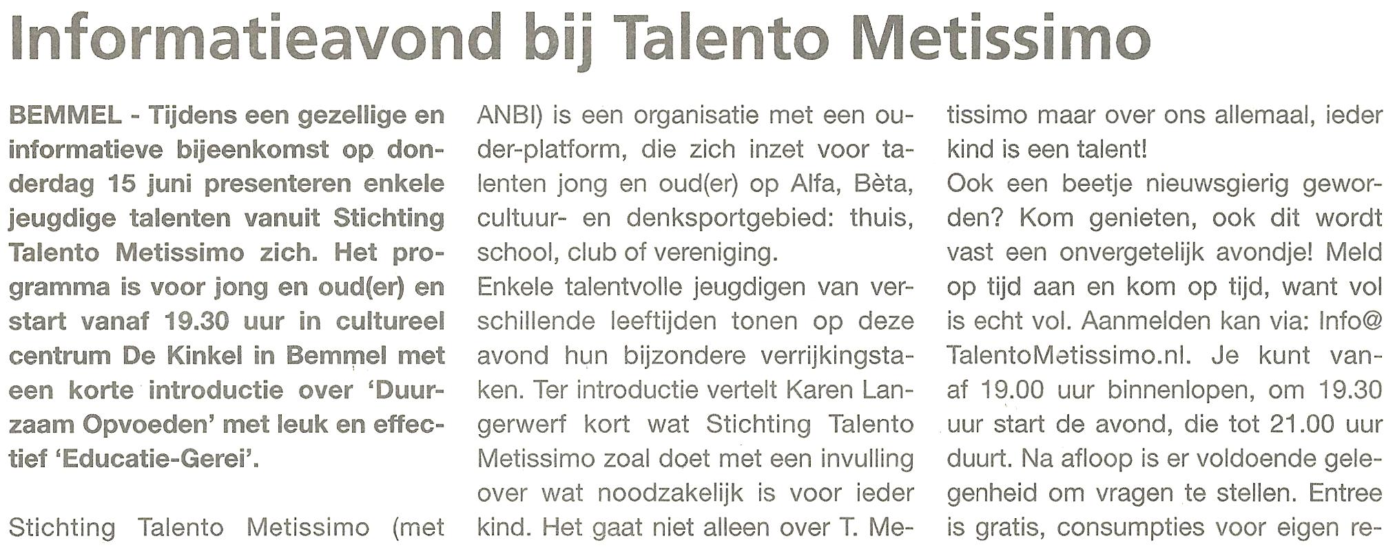 On-line artikel: "Talenten vinden draai bij Metissimo". |