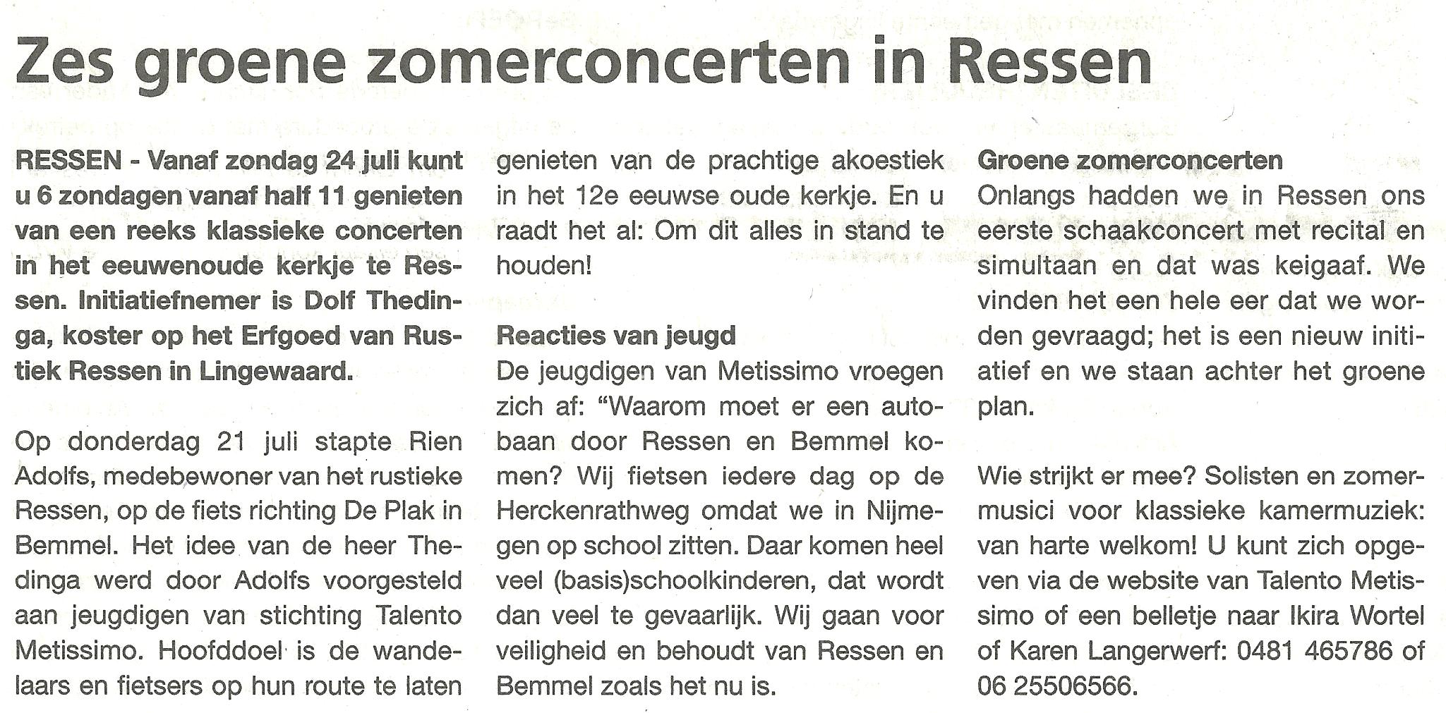 On-Line artikel op pag. 21/32: "Romantiek op Zomerconcert Ressen".