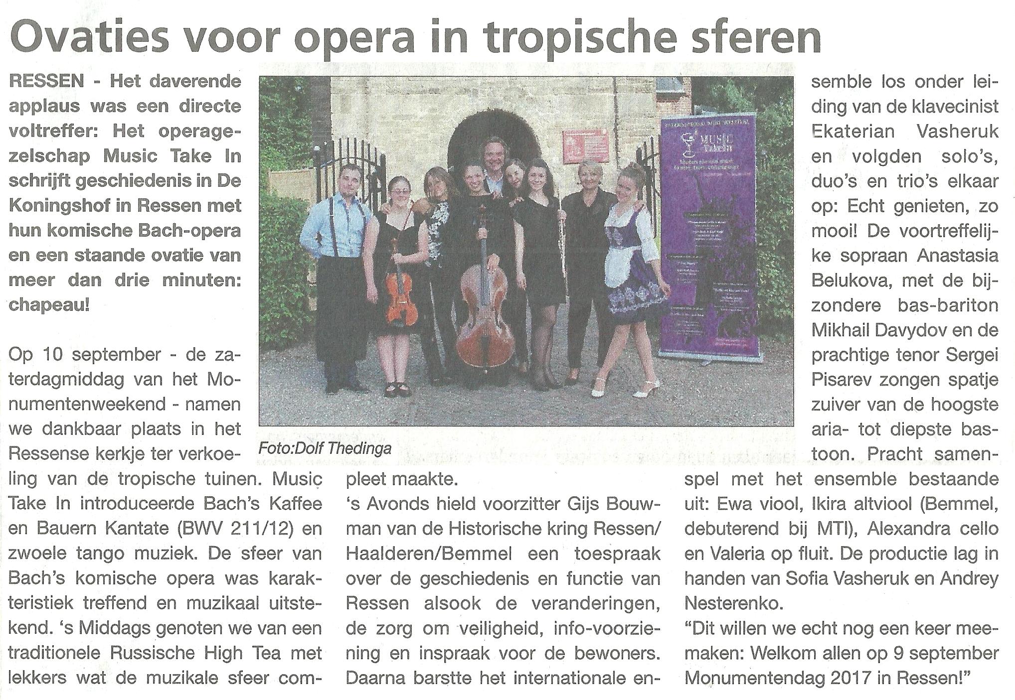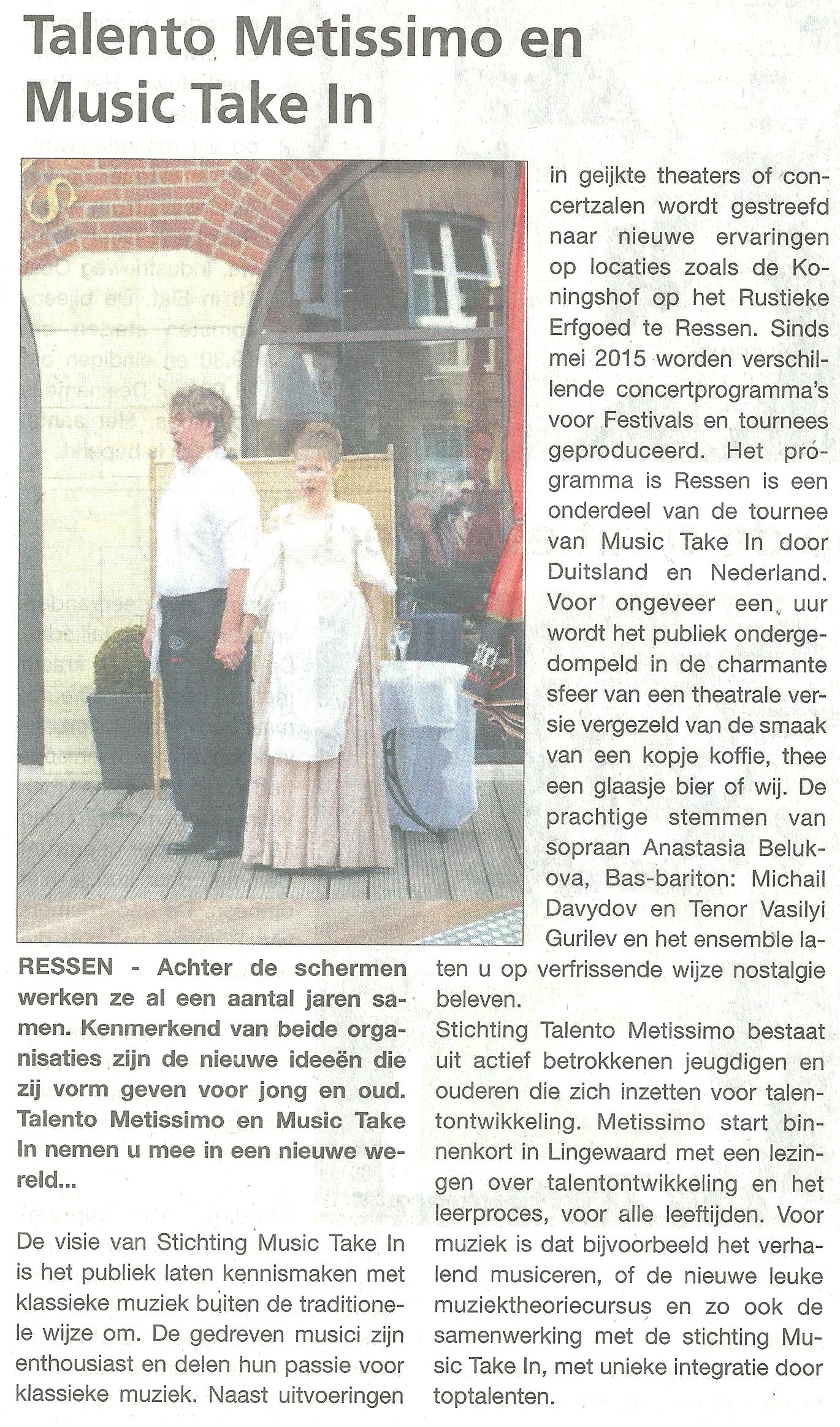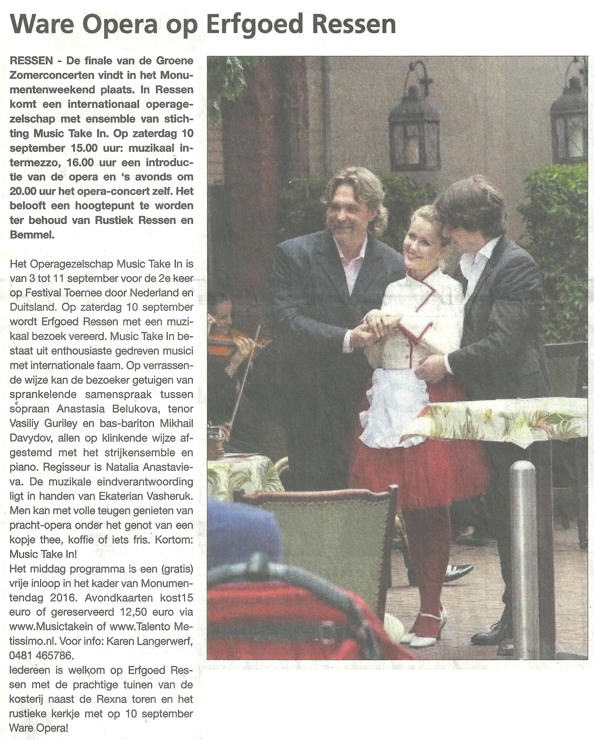 recensie in dagblad "dé Gelderlander" regio Lingewaard